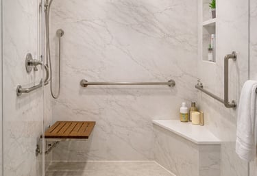 Explore real shower remodels completed by our in-house team. From sleek walk-in showers to low-threshold designs, every project is built for beauty, safety, and durability.